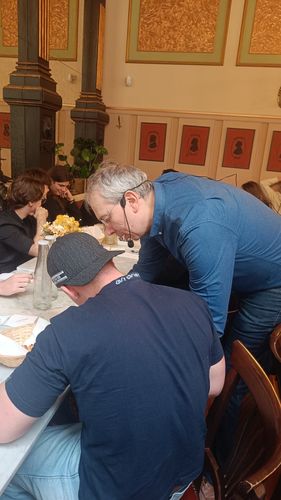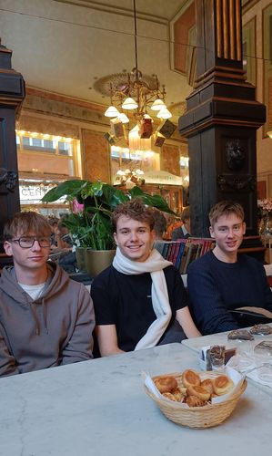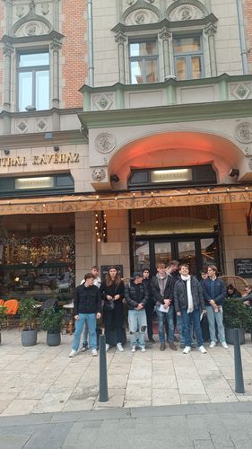 A 12.D egyik csoportja december 09-én igazi időutazáson vett részt a Centrál Grand Café irodalmi kávéházi óráján Meskó Zsolt író-rendező értő vezetésével. Ott ültek, ahol valaha a Nyugat leghíresebb szerzői. S hogy még inkább átélhessék egy történelmi kávéház hangulatát, nemcsak beszélgetésre, de versírásra is rávették őket. Köszönjük a támogatást: Csíki és Rácz tanárnőknek, Nagy Zsolt tanár úrnak!