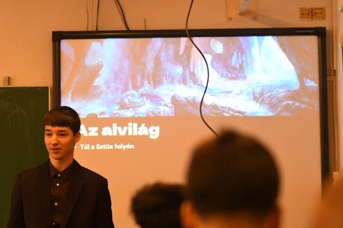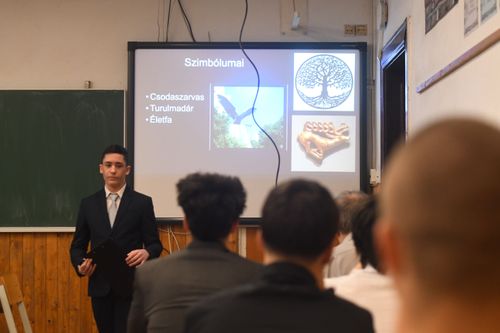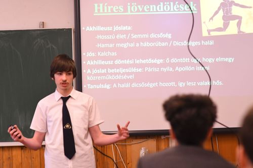 A 9.K osztály tanulói egy külön projektnap keretében mutatták be prezentációikat, amelyek a 9. évfolyam irodalomanyagához kapcsolódtak. A bemutatók rendkívül sokszínűek voltak: kreatív vizuális elemek, ötletes megoldások és jelmezek is megjelentek, így az előadások valódi élményt nyújtottak a közönségnek. 🎨📚